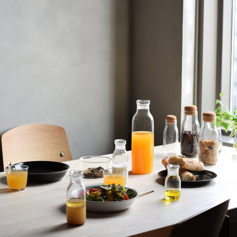 [Body] Heat-resistant glass Maximum temperature differential 120℃/248℉ Microwave and dishwasher safe [Lid] Cork Made in China Use only for its intended purposes. Immediately wash and dry well after use, and keep dry when not in use. Do not overheat in the microwave or heat without water. Wash with care. Don't use abrasive cleansers or steel wool. Don't place near fire. Sudden temperature changes may break or shatter the product. While the glass is hot, don't pour cold liquids into it and don't place it to on a wet cloth or in a wet sink. Be aware that the lid may become stained with the odour or colour of some foodstuffs. Product shape and capacity vary in each item due to the nature of the manufacturing process. Do not hold by the lid when carrying, as the container might fall and break.