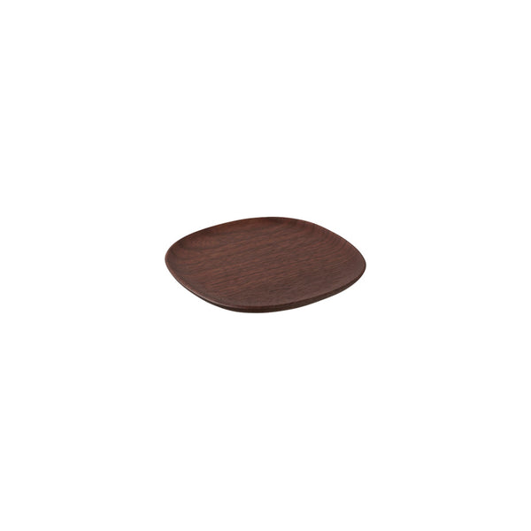 The coasters are made of solid wood and the organic shaped trays are made of plywood. The trays have a special coating on the surface that prevents items from slipping when serving.