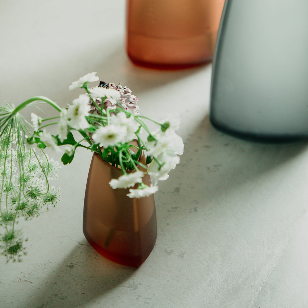 With a wide base and gently tapered triangular opening, the form is designed to support balanced arrangements, whether it's a full bouquet or just a few stems.